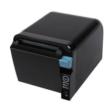 El ticket se emite por la parte frontal de la impresora, lo que hace que sea más pequeña (200x125x112.5) y de menor peso.